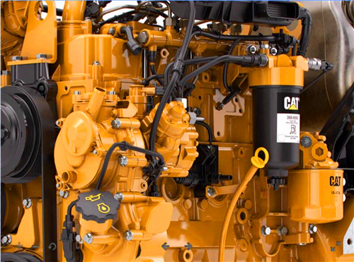 以卡特 303CR 為例,其發(fā)動機型號為 Cat C1.1T。發(fā)動機功率為 18.4kW,凈功率為 17.6kW,缸徑 77mm,沖程 81mm,排量 1.1L。