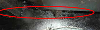 造成此故障的現(xiàn)象:發(fā)動機(jī)的飛輪殼開裂(如下圖所示),有時表現(xiàn)的現(xiàn)象為發(fā)動機(jī)后部漏油,進(jìn)一步觀察,主要原因是飛輪殼開裂所致。 造成此故障的原因分析:主要原因是整車傳動系統(tǒng)振動過大,導(dǎo)致飛輪殼被震裂 此故障的維修解決方法:更換飛輪殼、整車傳動軸