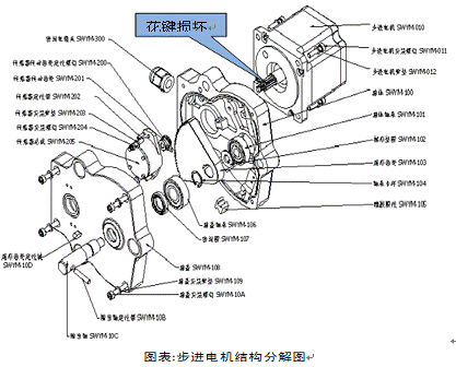 5、測量步進電機A+與A-,B+與B-之間電阻正常,用手拉動油門拉桿,發(fā)現(xiàn)油門拉桿拉動困難 ,進一步檢查發(fā)現(xiàn)電機傳動花鍵與扇形齒輪之間卡滯,花鍵損壞,更換油門馬達后正常;
