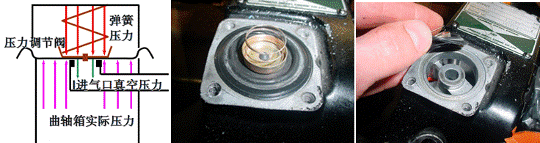 通過與進(jìn)氣管的真空度和彈簧彈力 的平衡來保持曲軸箱壓力在一個(gè)恒定的水平