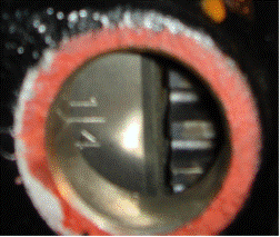松開(kāi)氣門(mén)橋調(diào)整螺栓,為了確保氣門(mén)橋與前后氣門(mén)接觸一樣,向下輕壓氣門(mén)橋,調(diào)節(jié)氣門(mén)橋調(diào)整螺栓直到調(diào)節(jié)螺栓和前氣門(mén)之間出現(xiàn)一個(gè) “0” 間隙,并鎖緊螺栓。