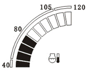 監(jiān)控儀表工作顯示界面直觀顯示發(fā)動機(jī)冷卻液溫度,如圖所示。顯示范圍為40℃~120℃十段,可根據(jù)段位監(jiān)控冷卻液溫度。如要查看具體精確數(shù)值,請參閱運(yùn)行參數(shù)。