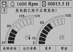 啟動發(fā)動機(jī)后,如果監(jiān)控儀表未檢測到充電信號,提示“發(fā)電機(jī)已經(jīng)不正常發(fā)電!”文字報(bào)警,監(jiān)控儀表面板上充電報(bào)警指示燈