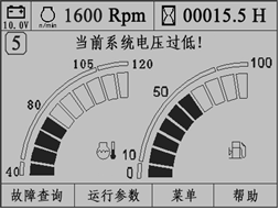 監(jiān)控儀表工作顯示界面直觀顯示挖掘機(jī)電氣系統(tǒng)的系統(tǒng)電壓。