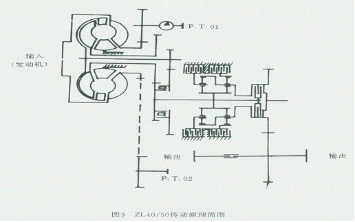 雙渦輪變矩器、行星變速箱,動力換檔,機液控制為ZL40/50裝載機配套