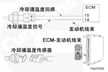 電子控制模塊 (ECM) 利用 CTS 監(jiān)測發(fā)動機冷卻液溫度。ECM 監(jiān)測信號觸針上的電壓并將它轉(zhuǎn)換成溫度值。ECM 將冷卻液溫度用于發(fā)動機保護系統(tǒng)和供油控制。
