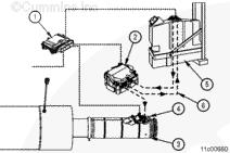 SCR 催化器出口處的氮氧化物傳感器 (4) 將監(jiān)測排氣系統(tǒng)的氮氧化物排放量,并將信息送回 ECM。