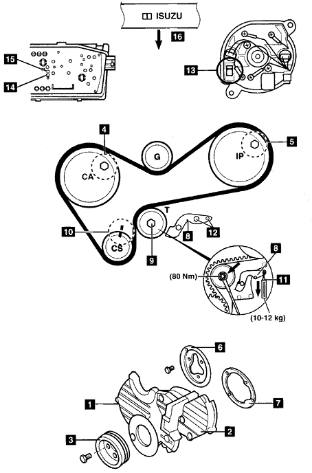 注意:從發(fā)動(dòng)機(jī)的前部應(yīng)該可以讀到皮帶上的字母‘ISUZU’(如圖16所示)。