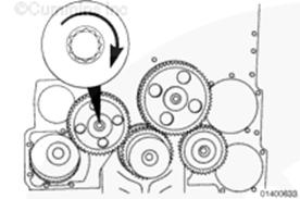 轉動曲軸以旋轉發(fā)動機,直至曲軸和凸輪軸齒輪上的指示標記對準。