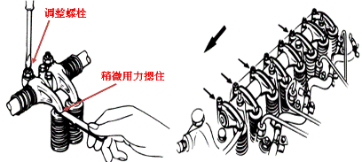 4.盤(pán)轉(zhuǎn)曲軸360度,按“雙排不進(jìn)”方法調(diào)整4缸上止點(diǎn)時(shí)氣門(mén)間隙