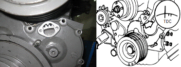 1號(hào)缸上止點(diǎn)確認(rèn)曲軸皮帶輪上的刻線是否與正時(shí)齒輪室上的指針對(duì)齊。