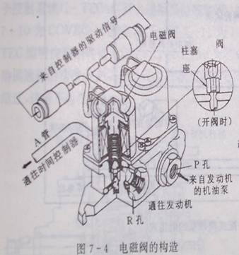 ECU控制電磁閥調(diào)節(jié)R孔的回流量從而控制控制A通往時(shí)間控制器的油壓控制調(diào)節(jié)活塞位置來(lái)實(shí)現(xiàn)噴油提前調(diào)節(jié)。