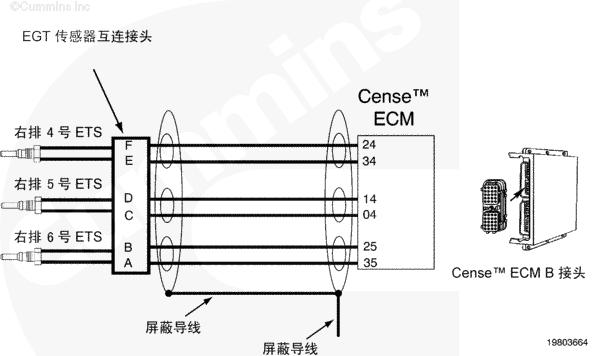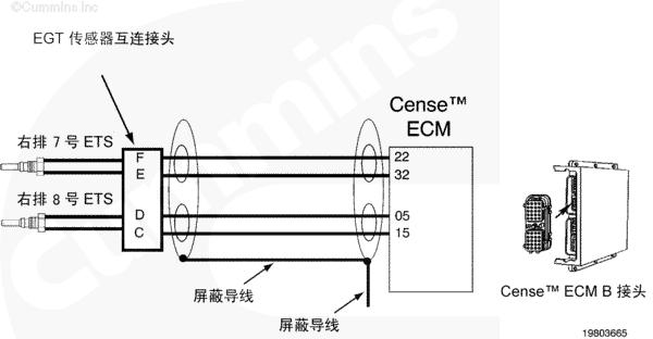 排氣溫度傳感器電路圖向 CENSE™ ECM 提供排氣溫度信號(hào)。排氣溫度傳感器為熱電偶。熱電偶是將兩種不同的金屬焊接起來(lái)構(gòu)成的。接合點(diǎn)隨溫度變化產(chǎn)生極小的電壓。