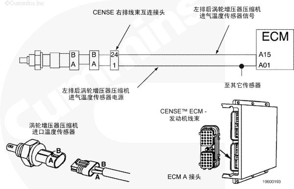 左排前進(jìn)氣歧管溫度傳感器電路圖向 CM500 ECM 提供左排前進(jìn)氣歧管空氣溫度信號。