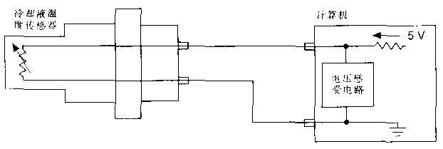 溫度傳感器的溫度電阻作為5V分壓電路的一部分,溫度傳感器的兩端與受壓電路相連接,當(dāng)溫度傳感器的溫度電阻隨溫度發(fā)生變化時(shí),受壓電路的電壓發(fā)生變化,該電壓被輸入到ECU接口電路的模數(shù)轉(zhuǎn)換電路。電壓與溫度之間的關(guān)系特性曲線被存儲(chǔ)在發(fā)動(dòng)機(jī)的管理系統(tǒng)的ECU中。