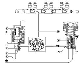 該閥與進(jìn)油計(jì)量比例閥油路并聯(lián)在一起,能使 進(jìn)油計(jì)量比例閥的入口處的燃油壓力保持恒定——這 是保證系統(tǒng)能正常運(yùn)行的先決條件。同時(shí)在正常工作時(shí)通過(guò)它增大進(jìn)入CP3高壓泵的潤(rùn)滑和冷卻油量。