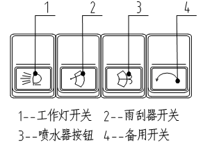 按下工作燈開(kāi)關(guān)右側(cè),則動(dòng)臂左、右工作燈與平臺(tái)工作燈亮,按下開(kāi)關(guān)左側(cè)以斷開(kāi)工作燈。