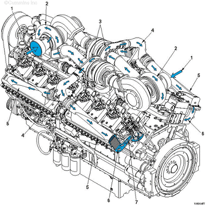康明斯QSK38 船用發(fā)動機進氣流(QSK50 與此類似)