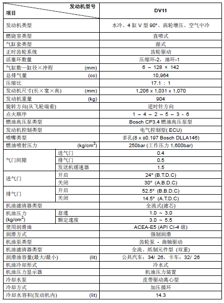 韓國(guó)斗山大宇發(fā)動(dòng)機(jī)規(guī)格詳細(xì)的技術(shù)參數(shù)(Engine Specifications)