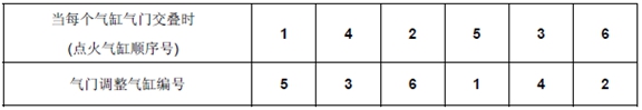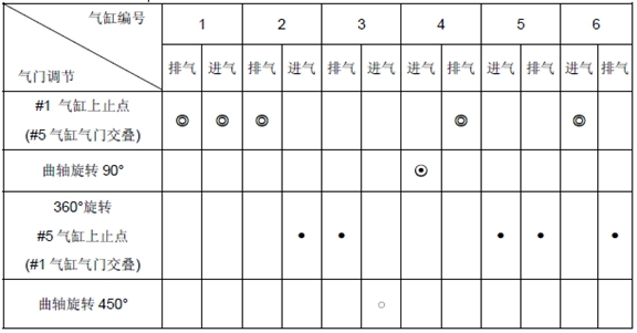 5) 當(dāng)5 號(hào)氣缸處于上止點(diǎn)時(shí),根據(jù)列表中“●”調(diào)整氣門間隙 。