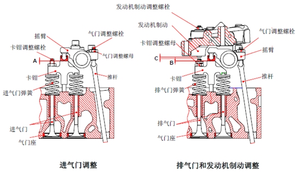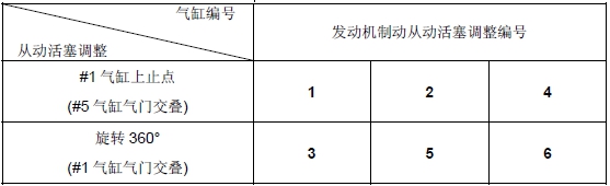 *當(dāng)調(diào)整發(fā)動(dòng)機(jī)制動(dòng)從動(dòng)活塞時(shí),只調(diào)整相應(yīng)氣缸編號(hào)的排氣門。