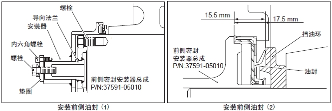 (4) 旋緊導(dǎo)向法蘭上的螺栓,將油封插入前端板內(nèi)。