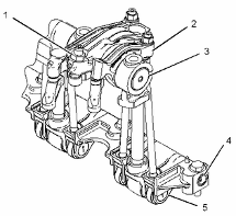 (2)搖臂 (3)搖臂軸 (4)挺桿總成軸 (5)單體噴油器挺桿組件 |