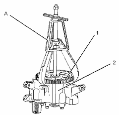 卸下將驅(qū)動(dòng)齒輪 (1) 固定在發(fā)動(dòng)機(jī)機(jī)油泵 (2) 泵軸上的螺栓。 使用工具 (A) ,從軸上卸下驅(qū)動(dòng)齒輪。 從軸上卸下鍵。