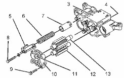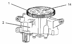 使用清潔的發(fā)動(dòng)機(jī)機(jī)油潤(rùn)滑惰齒輪和驅(qū)動(dòng)齒輪。 使用清潔的發(fā)動(dòng)機(jī)機(jī)油潤(rùn)滑套筒軸承 (4) 。 將惰齒輪 (12) 和驅(qū)動(dòng)齒輪 (13) 安裝到泵體 (3) 中。