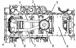 將 O 形密封圈安裝在管組件 (7) 上。 使用清潔的發(fā)動(dòng)機(jī)機(jī)油潤(rùn)滑發(fā)動(dòng)機(jī)機(jī)油泵中的孔。 將管組件 (7) 安裝到發(fā)動(dòng)機(jī)機(jī)油泵中。安裝墊圈和螺栓 (6) 。