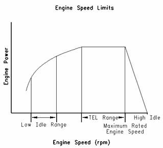 "TEL"是一個(gè)客戶可編程參數(shù),用于定義最大功率下允許的最高發(fā)動(dòng)機(jī)轉(zhuǎn)速。最大可將"TEL"編程設(shè)定在最高發(fā)動(dòng)機(jī)額定轉(zhuǎn)速上。"TEL"通過(guò)發(fā)動(dòng)機(jī)過(guò)載運(yùn)轉(zhuǎn)曲線定義。