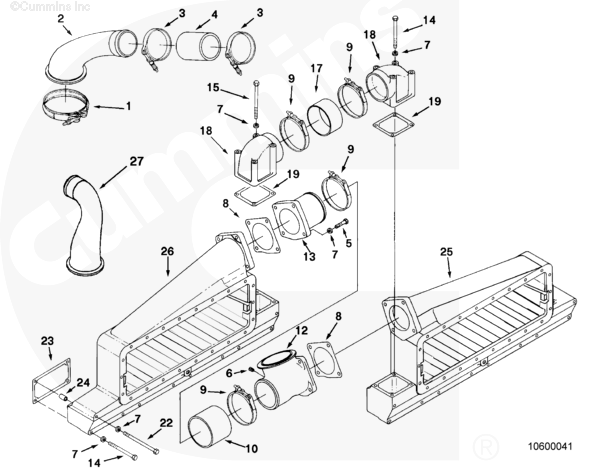 注釋 2:新式康明斯發(fā)動(dòng)機(jī)有專用的軟管和卡箍,不用這些零件。