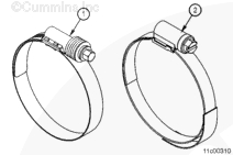 注: 此位置可以采用兩種不同形式的軟管卡箍。無論采用哪種卡箍,每個(gè)卡箍的扭矩值相同。