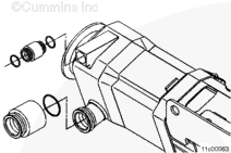 將新的 O 形圈安裝到 EGR 冷卻器冷卻液供應(yīng)管和跨接管接頭上。為了便于安裝,用清潔的發(fā)動(dòng)機(jī)冷卻液、肥皂液或植物油潤滑 O 形圈。