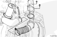 從部件上拆下保護(hù)蓋。潤滑 EGR 后連接管的軟管端。安裝軟管卡箍但不要擰緊,在 EGR 冷卻器和 EGR 閥安裝支架上安裝 EGR 后連接管和密封墊。擰緊 2 個(gè)螺釘。