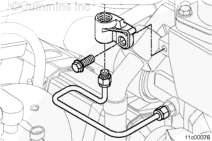 安裝 EGR 冷卻器冷卻液供應(yīng)管安裝支架和螺母。擰緊螺母。