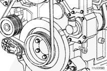 使用壓縮機(jī)驅(qū)動裝置或盤車裝置沿順時(shí)針旋轉(zhuǎn)方向(從發(fā)動機(jī)前方看)盤動發(fā)動機(jī)。將減振器上的 A 標(biāo)記與齒輪室蓋上的指示箭頭對齊。
