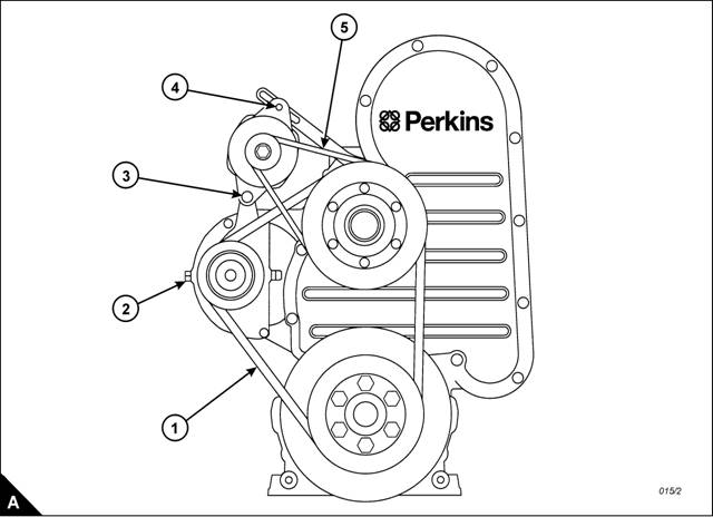 Use a Borroughs belt tension gauge to check the tension at (A5). It should be 625 N (461 lbf ft) 63,73 kgf. To