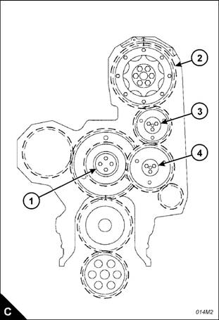 5 Remove the rocker lever and rocker shaft assemblies, Operation -2. If the camshaft gear (C2) is to be