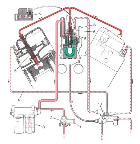 2 Disconnect the fuel leak-off pipes from the fuel filter
