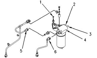 2.從注油泵上拆下防塵蓋。從燃油軟管組件上取下塞子。連接燃油軟管組件(1)。連接燃油軟管組件(4)。