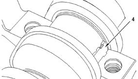 4.用適當?shù)墓ぞ?,從軸承凸舌對面(4)推壓上軸瓦。推動軸瓦(4)的同時,小心地轉動曲軸。從缸體上拆下上軸瓦(4)。為保證正確安裝,將所有軸瓦(4)的上半部分放在一起。