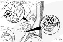 在皮帶已拆除的情況下,核實張緊器臂止動塊與彈簧殼止動塊接觸。如果二者沒有接觸,必須更換張緊器。