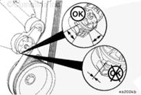 檢查皮帶張緊器皮帶輪上傳動皮帶的位置。皮帶應位于皮帶輪的中間,或靠近中間。未對準的皮帶、無論太靠前或太靠后,都可能造成皮帶磨損、皮帶滾動故障或增加不均勻的張緊器襯套磨損。
