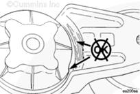 測量張緊器彈簧殼與張緊器臂之間的間隙,以核實張緊器已磨損以及不均勻的軸承磨損。如果在任何點上的間隙超過 3 mm [0.12 in],則張緊器失效而且必須作為整個總成進行更換。