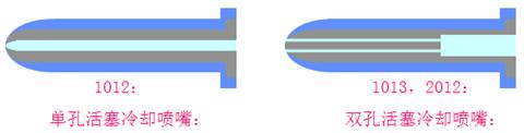 向活塞體內(nèi)部噴射潤(rùn)滑油實(shí)現(xiàn)活塞冷卻。塑料制成的活塞冷卻噴嘴裝在主軸承座內(nèi)。安裝時(shí)不需要對(duì)準(zhǔn)。