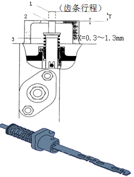 控制齒條起動(dòng)位置與停車位置的位移差值即是控制齒條的行程 | |