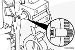 使用兩個(gè)扳手,固定調(diào)整螺母并擰緊鎖緊螺母。扭矩值: 35 n.m [26 ft-lb]對(duì)于 4 號(hào)缸和 6 號(hào)缸重復(fù)此步驟。