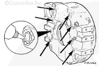 在飛輪殼體起動馬達(dá)安裝法蘭上涂敷一條 1.5 至 2.0 mm [0.06 至 0.09 in] 寬的密封膠(零件號 3164067)。