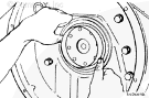 將油封導(dǎo)向器(包括在拆裝工具包中)安裝在曲軸上。將油封推到導(dǎo)向器和曲軸上。取下油封導(dǎo)向器。